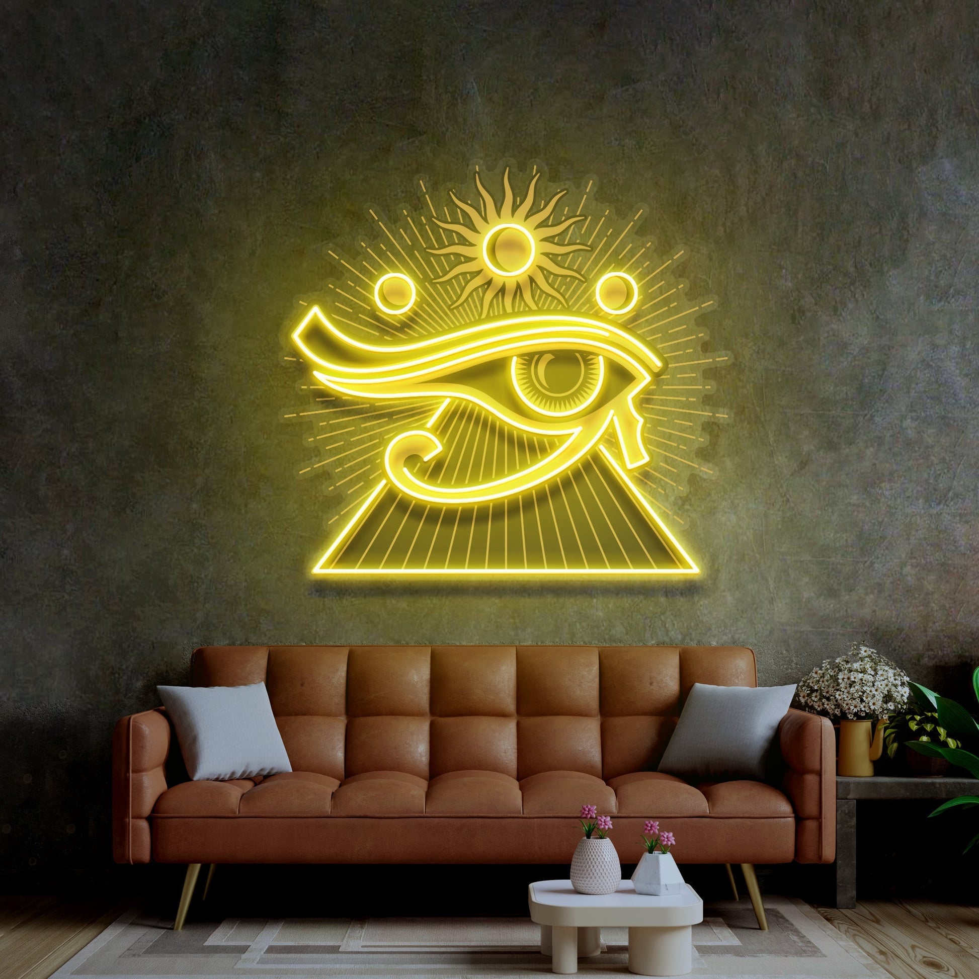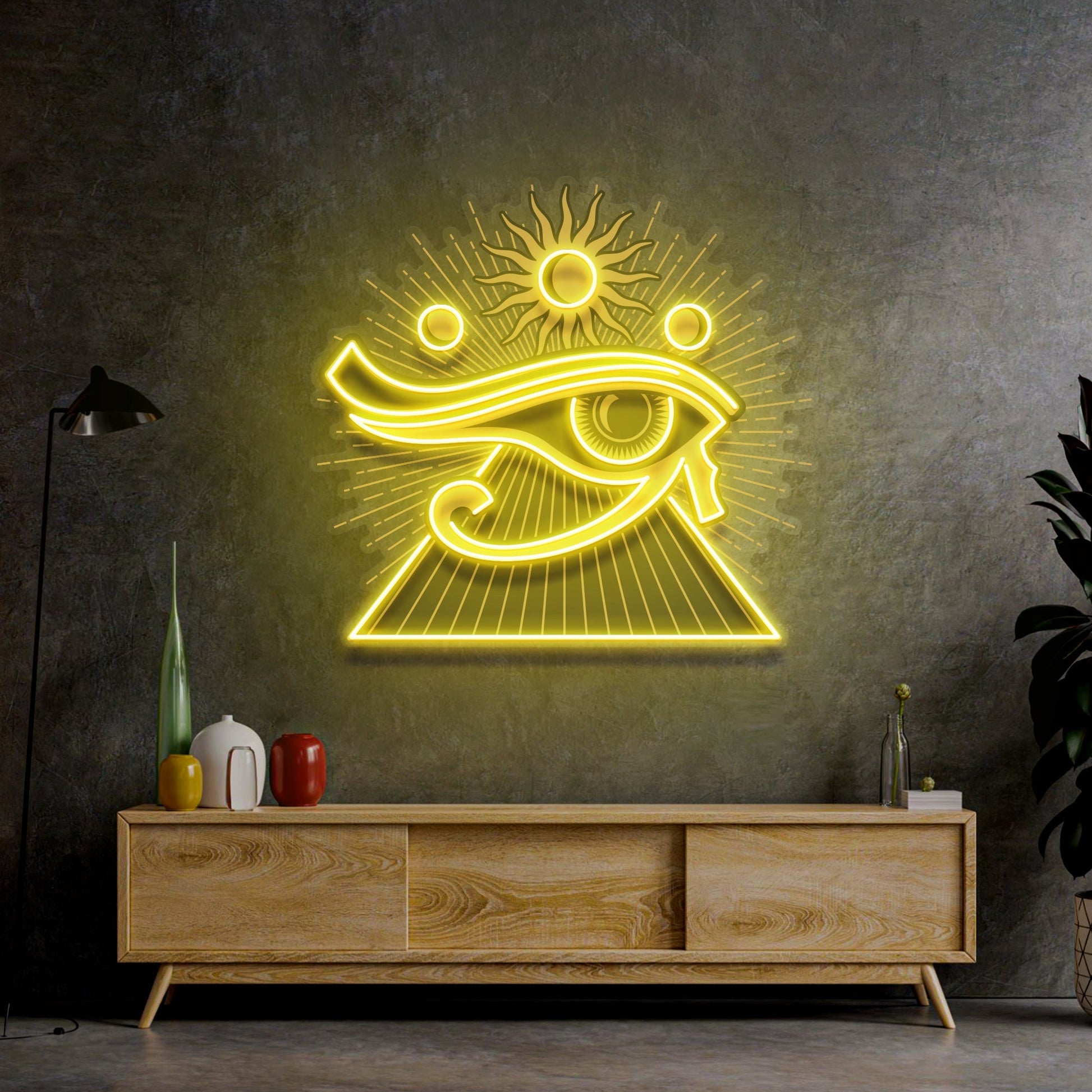 Eye of Ra LED Neon Acrylic Artwork with vibrant LED lights creates an inviting ambiance, making it a perfect addition to your home room (living room, bedroom), office, gaming room, event, outdoor home, party,...