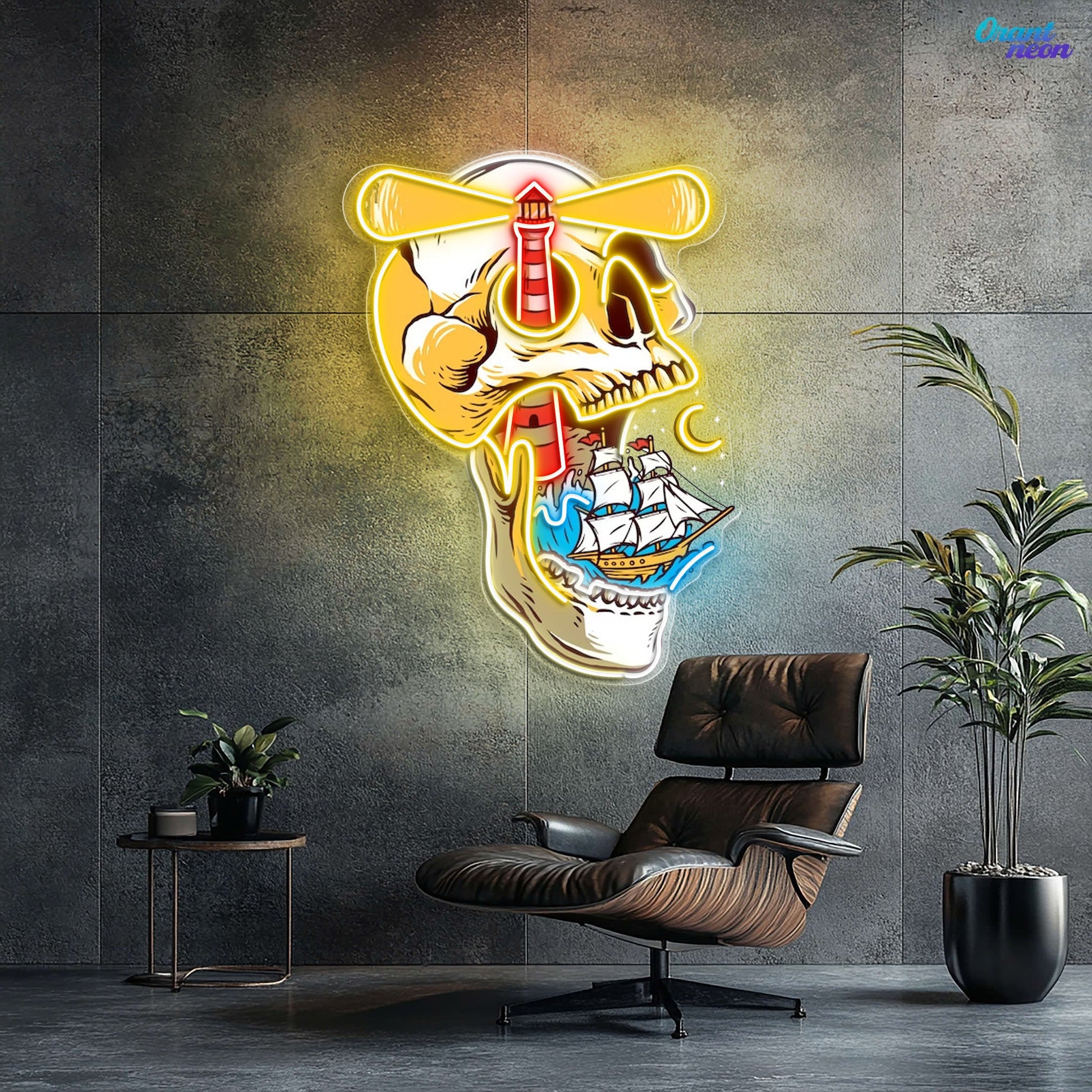 Ghost Ship's Beacon: Skull, Lighthouse & Ship Neon Sign Light Artwork