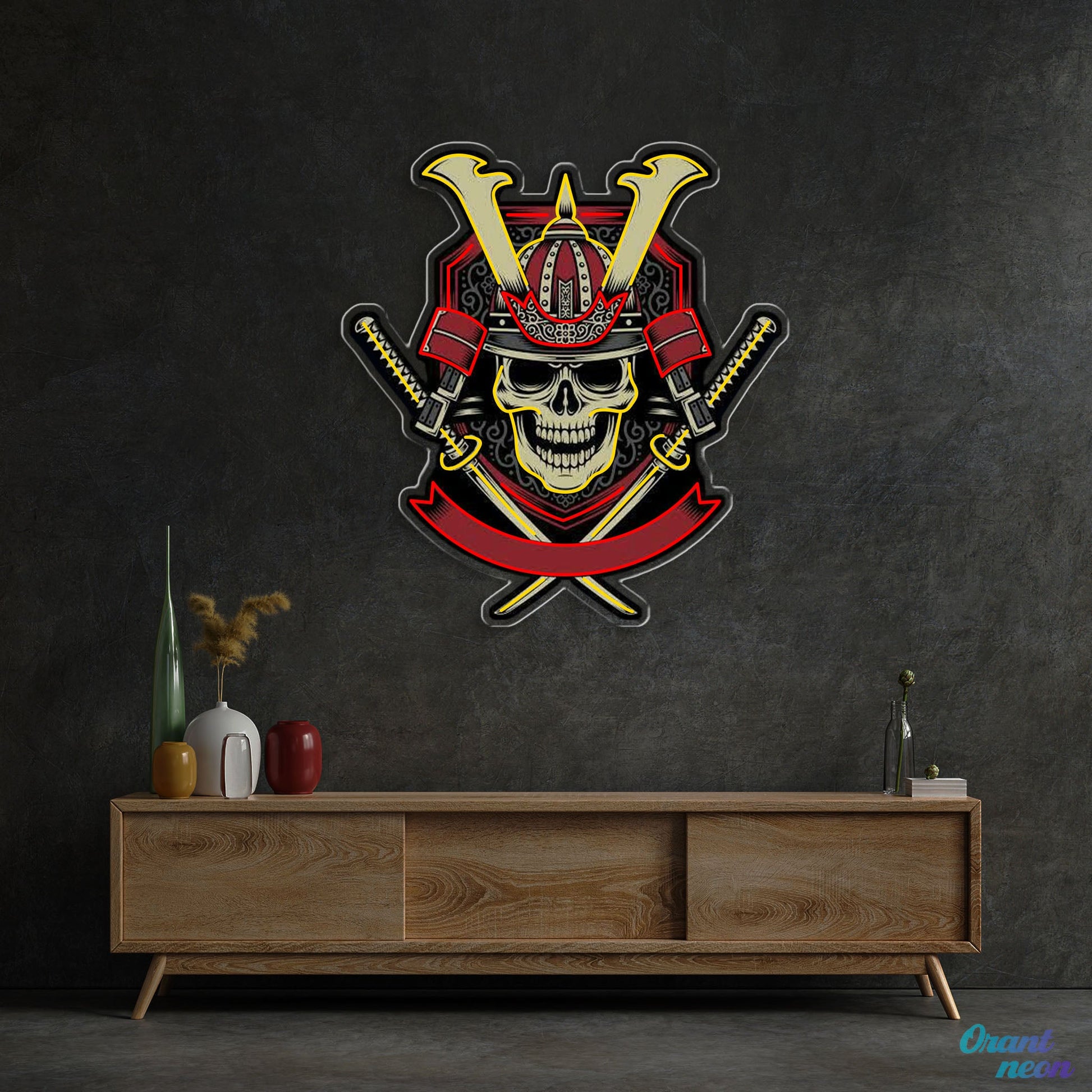 Japanese Samurai Skull Holding Katana Sword Neon Sign Light Artwork