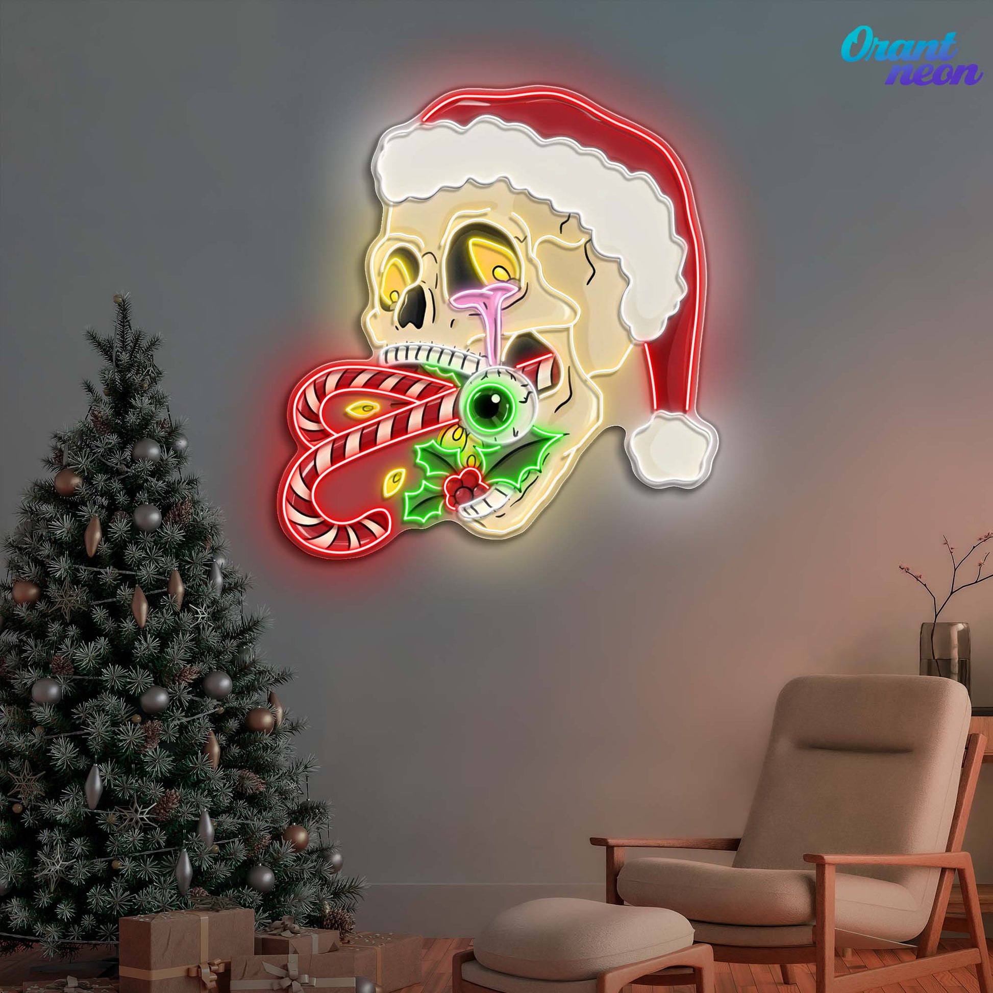 Merry Misfits: Skull & Sweets Christmas Neon Sign Light Artwork