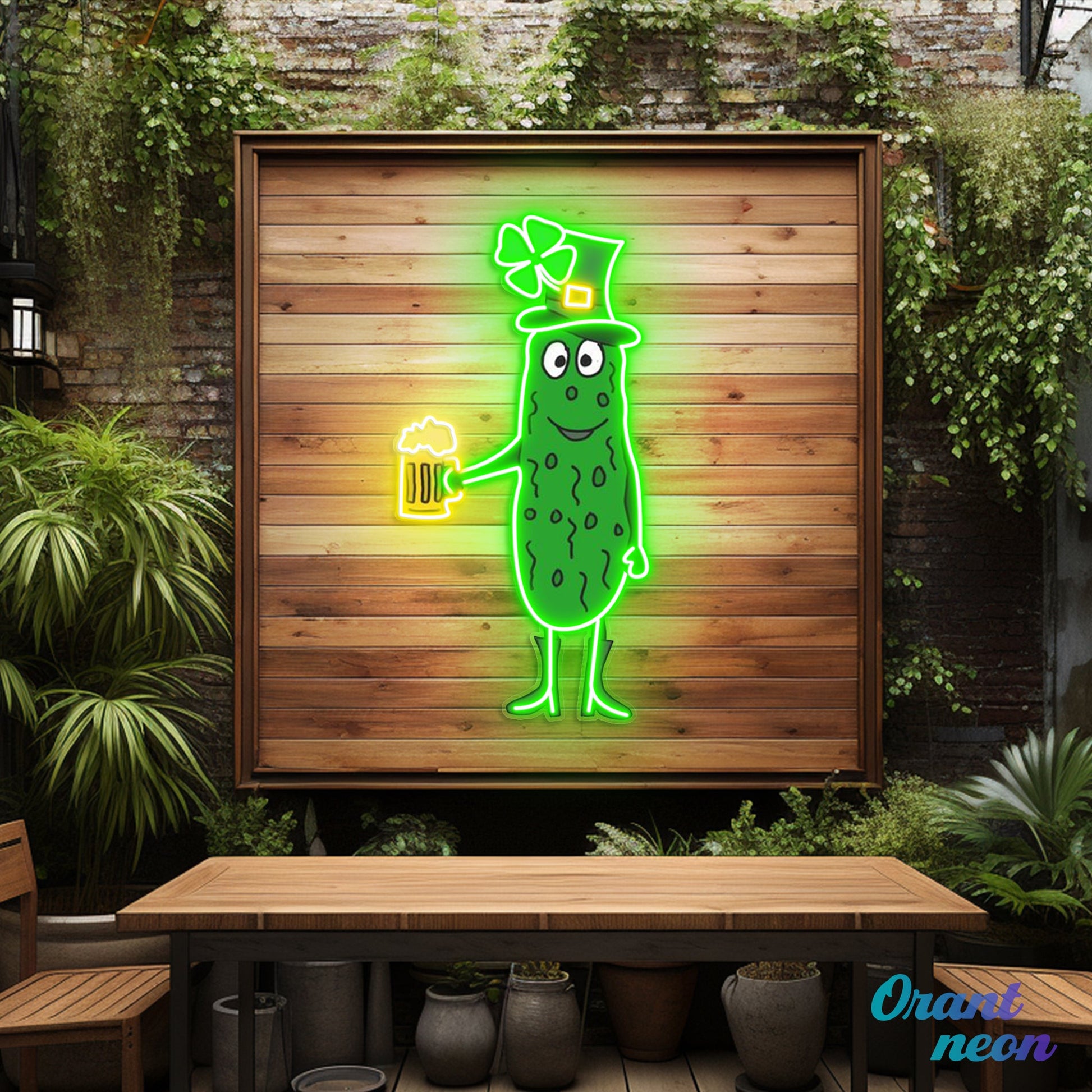 Patrick's Day Cucumber Wearing Hat and Drinking Beer Led Neon Acrylic Artwork