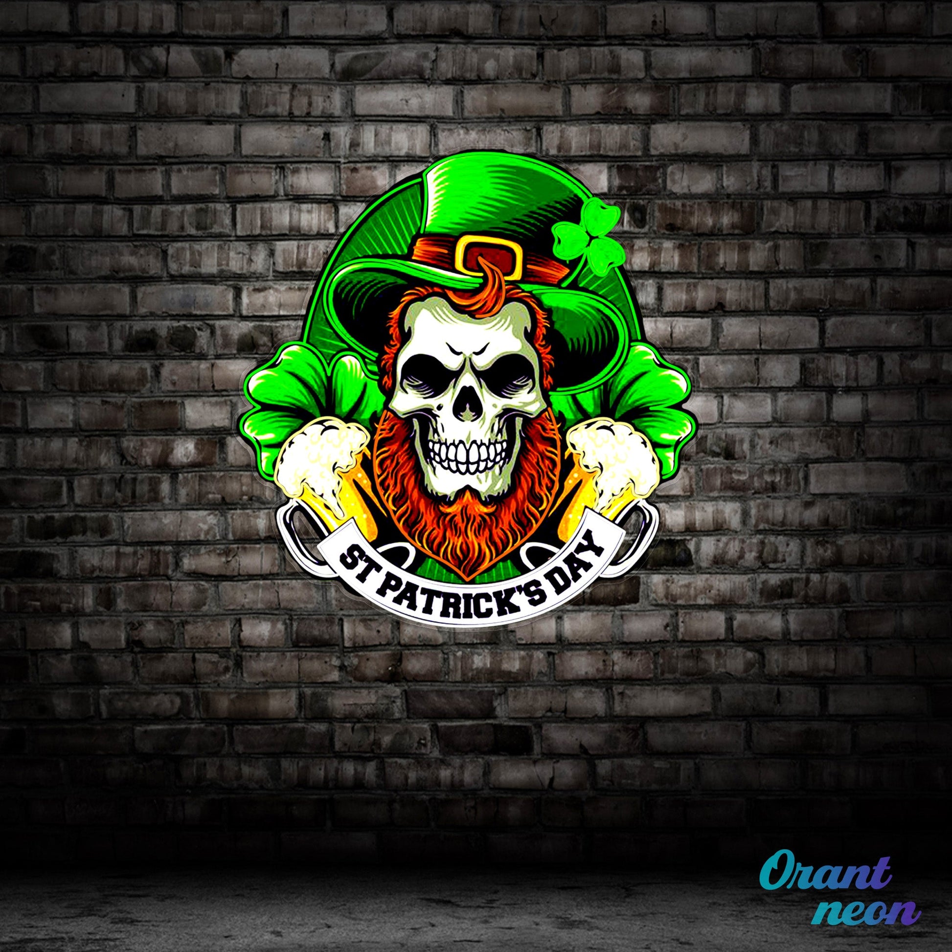 Patrick's Day Skull Wearing Hat And Beer Led Neon Acrylic Artwork
