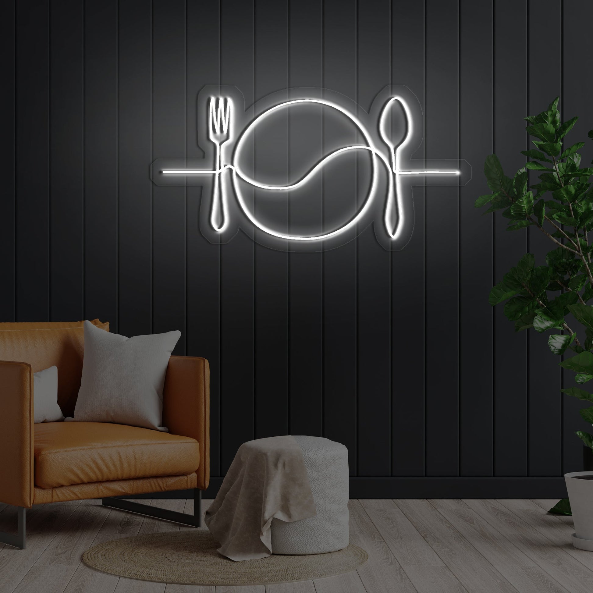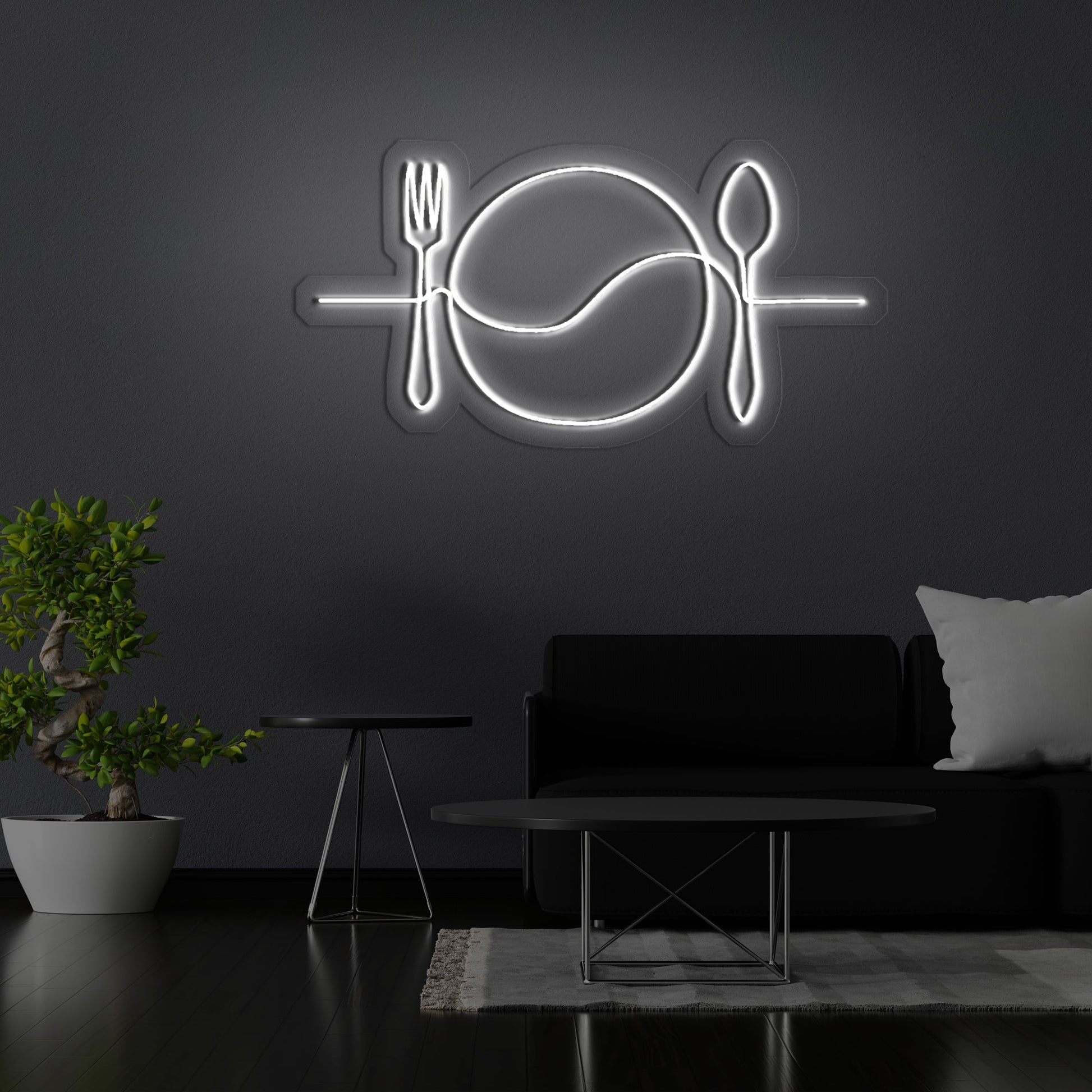 This "Plate Line Art" neon sign is the perfect way to add a touch of elegance to your space. The simple, yet chic design is sure to remind you of good food. The great neon light is not only eye-catching but will also lift up the ambiance to another level of sophistication.
